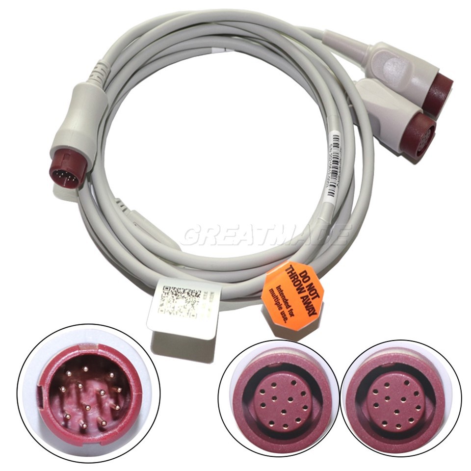 Cabo de interface de transdutor de pressão compatível com Mindray, plugue de 12 pinos para soquete de 12 pinos*2