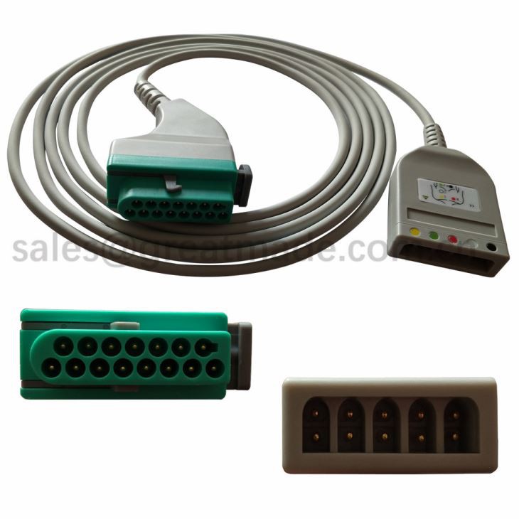 Solicitar monitor multiparamétrico / máquina de eletrocardiograma / esteira de exercícios ou desfibrilador, transitar o sinal de bioeletricidade do corpo humano. Os cabos do paciente e os fios do eletrodo são usados para conectar eletrodos, cateteres e / ou sensores colocados em locais apropriados no paciente a um dispositivo de monitoramento para monitoramento geral e / ou avaliação de diagnóstico por um profissional de saúde