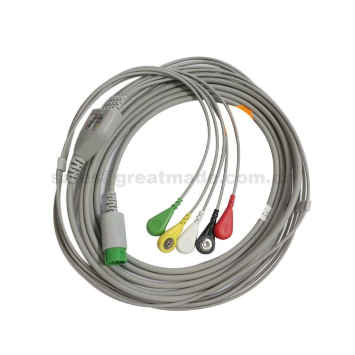 Cabo de ECG de peça única com escudo de 5 derivações Compatível com Mindray Beneview T5. T6 T8, PM5000, PM 6000, Pressão, IEC, 12 pés, Rodada 12PIN