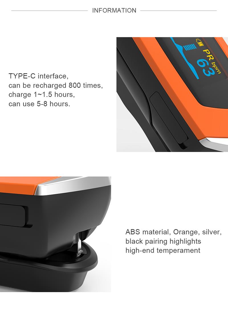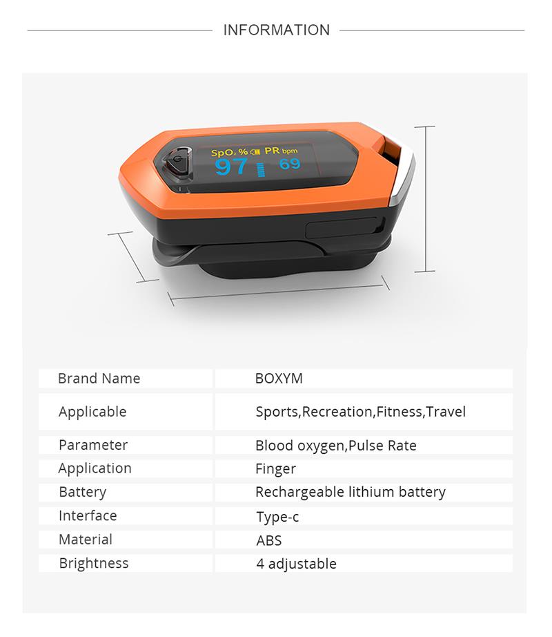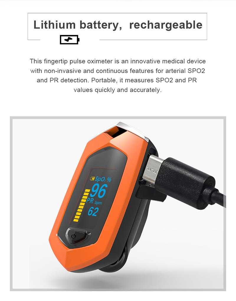 - 1 x oxímetro da ponta do dedo (bateria de lítio embutida)