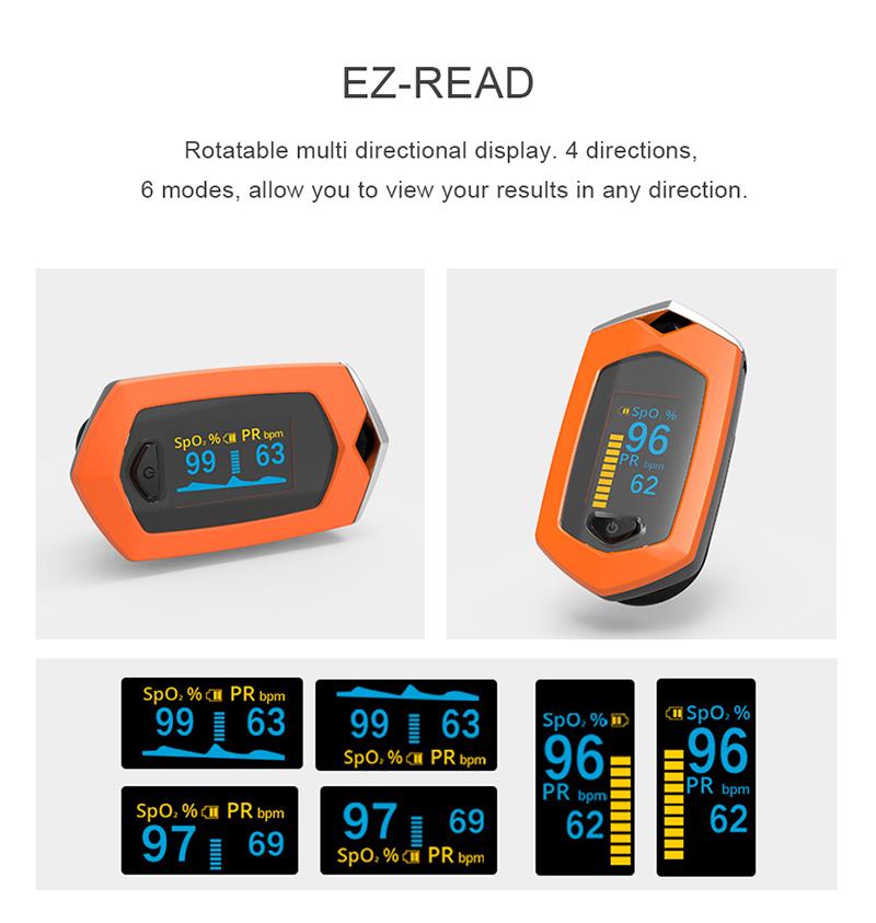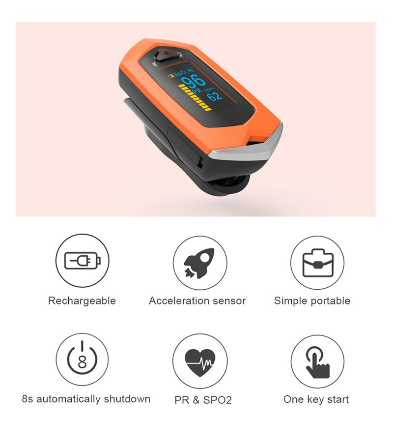 Uma estrela chave, Pode recarregável, Sensor de aceleração, desligamento automático de 8s, medição de PR & SPO2, Portátil simples