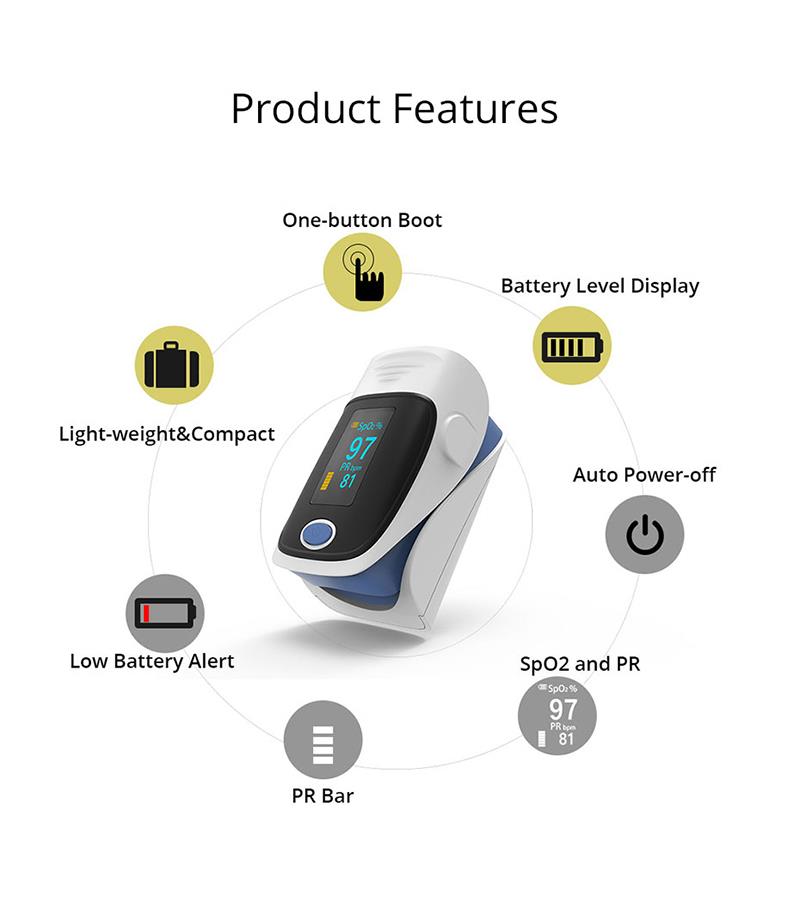 O oxímetro de pulso de dedo é uma maneira acessível e precisa de verificar as taxas de pulso e os níveis de saturação de oxigênio no sangue. Também mostra a onda do pletismógrafo, que garante a precisão. A braçadeira de dedo com auto-ajuste e o design simples de um botão permitem fácil operação. Vem com uma bolsa de transporte e cordão no pescoço / pulso. Conveniente para enfermeira e médico para pendurar no pescoço. O tamanho pequeno e portátil facilita o manuseio e transporte. Adequado para uso diário, meça sua saúde a qualquer momento.
